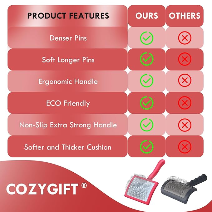 • [100% Guarantee] This slicker brush is well-priced and designed for your convenience. Keep one at home and another in the car for easy grooming on the go. It’s also a thoughtful gift for family, friends, and colleagues—COZYGIFT dog grooming brush is a sweet choice for pet lovers.