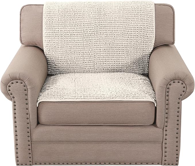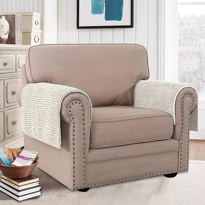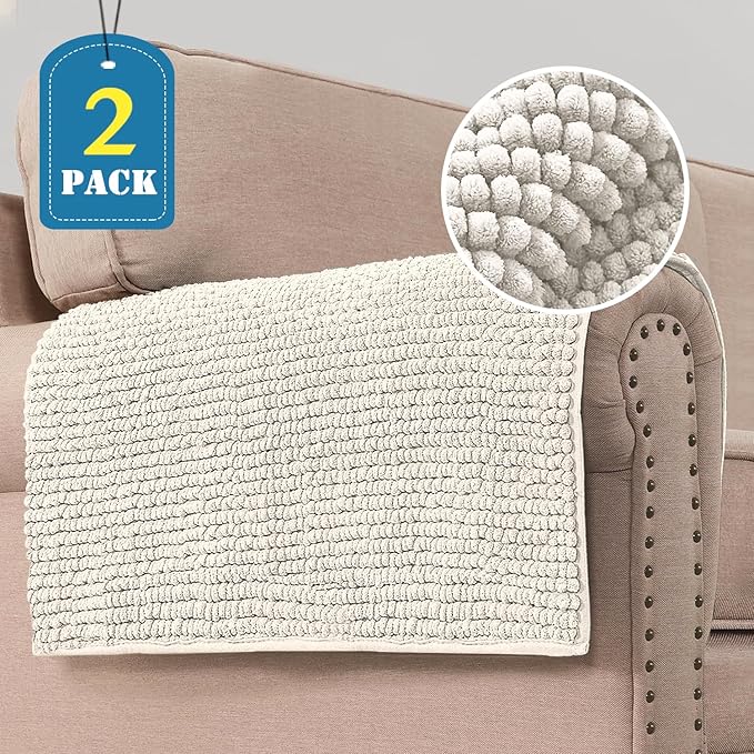 H.VERSAILTEX Plush Chenille Couch Armrest Cover 2 Packs Thick and Soft Sofa Covers Furniture Protector Cover for Pets (27.5" x 27.5", Ivory)