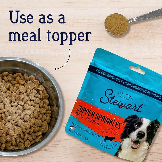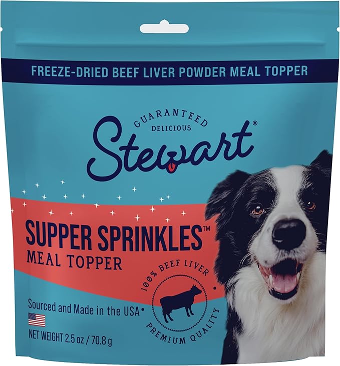 Stewart Beef Liver Supper Sprinkles, Dog Food Toppers, Beef Liver, 2.5 oz. Resealable Bag, Made in USA, Products for Dogs