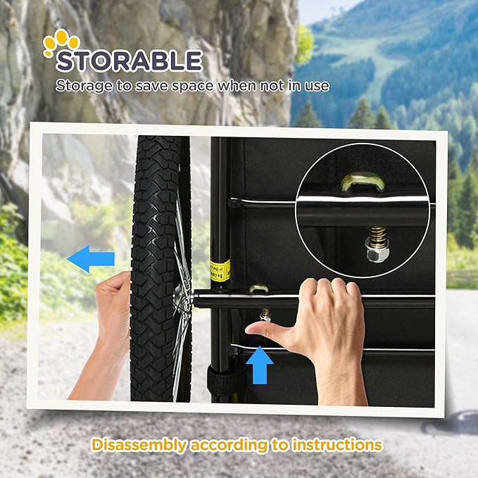 - Strong Construction: This trailer has a solid steel frame covered with Oxford fabric, keeping it in shape for daily use. Quick-release wheels make for easy disassembly and storage.