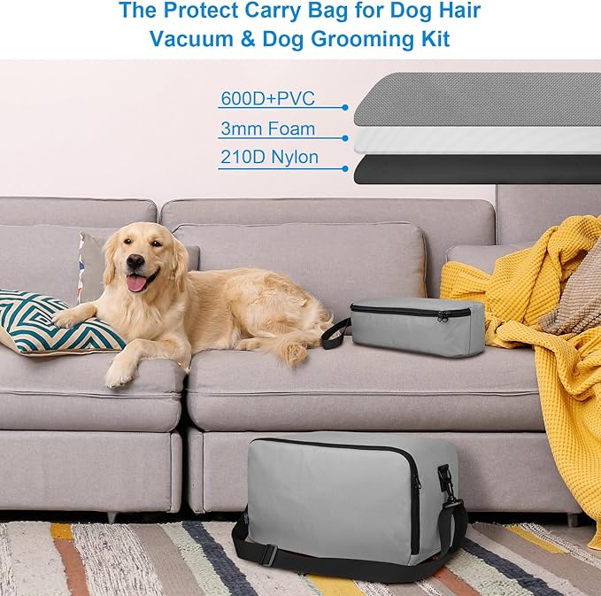 - With a Detachable Shoulder Strap: when you go out, you can use this bag with shoulder strap to protect and carry your dog grooming vacuum for shedding, take the set easily and free your hands; when at home, you can use it to store your pet grooming vacuum for dogs, making your home organized and can be used dust-proof at the same time.