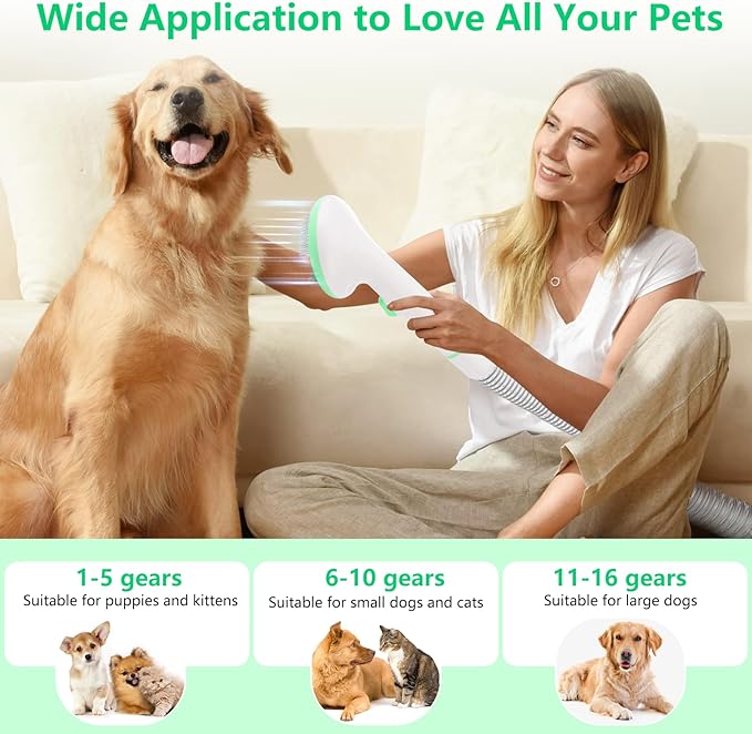 - Easy to Use: Pet grooming vacuum with a 2L large-capacity dust cup and one-touch lid-opening operation makes collecting and dumping pet hair simple; 16 grades for pets at different stages of growth and different use