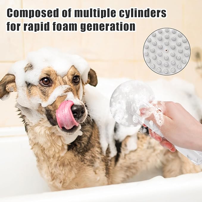 - Fast Foaming: The 36 massage particles on the brush head can make the shower gel quickly produce thick foam. It squeezes out shower gel easily and quickly. The rich foam can make the pet's fur cleaner and make the dog's bath more comfortable.