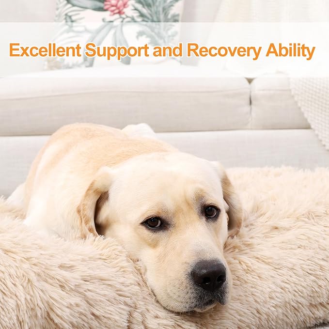 KSIIA Dog Crate Bed Washable Dog Beds for Large Dogs Deluxe Plush Fluffy Comfy Thick Kennel Pad Anti-Slip & Anti-Scratch Pet Sleeping Mat, 35 x 23 Inch, Camel