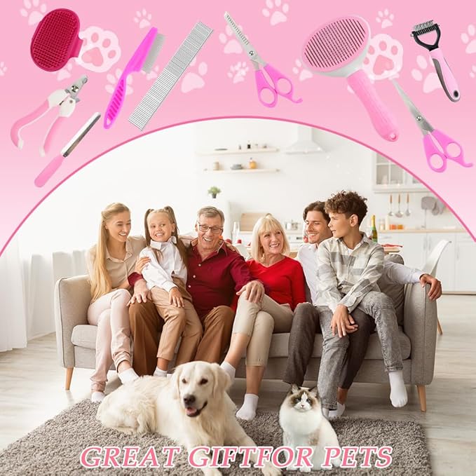 Dog Grooming Brush Shedding Kit, 10 Pcs All In One Pet Self Cleaning Kit with Slicker Brush, Deshedding Tool, Dog Grooming Scissors, Pet Nail Clippers and File for All Breeds of Dogs and Cats