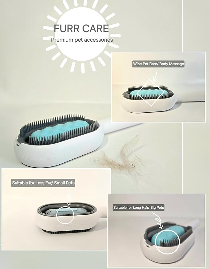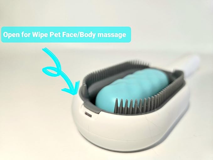 - 🐩 3-in-1 Grooming Solution: Combines comb, massager, and face wipe
