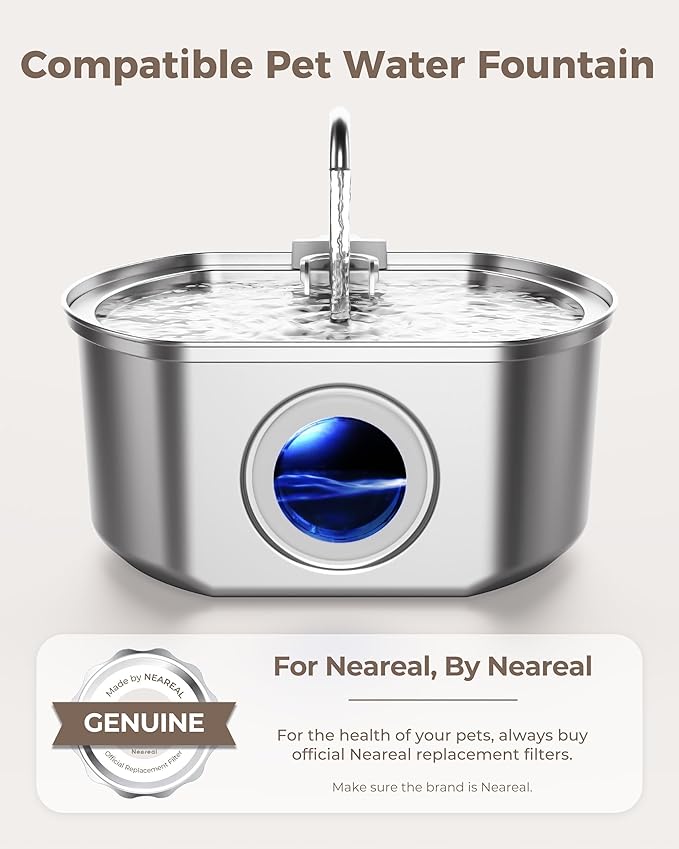 - Perfect Match: Compatible with Neareal 3.2 L/108 oz Stainless Steel Cat Water Fountain; Confirm filter compatibility using product images before purchase