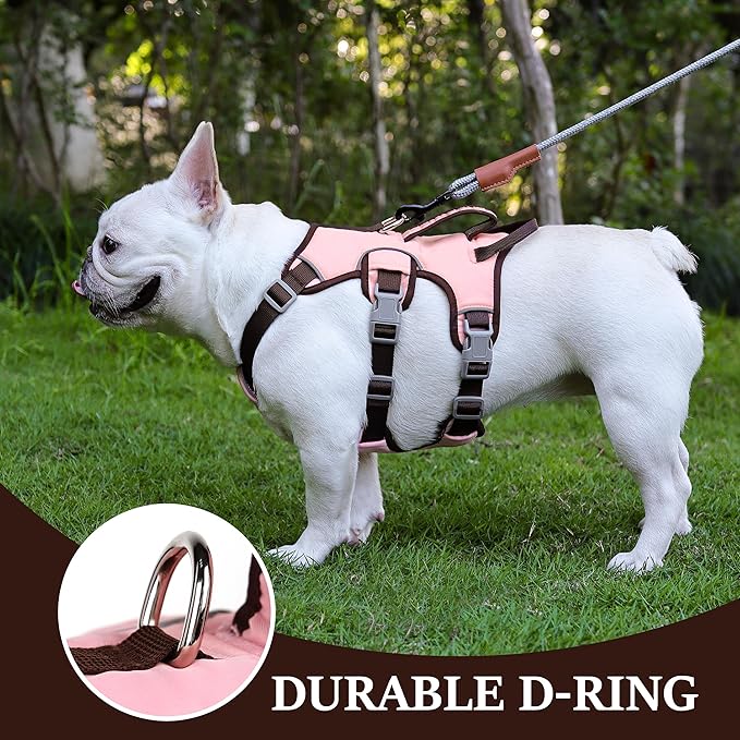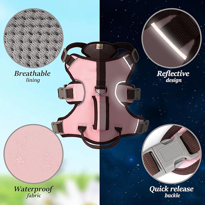 Forestpaw Escape Proof Dog Harness Small Medium Sized Dog,No Pull Dog Harness with Handle,Reflective Breathable Full Body Dog Vest Adjustable Puppy Harness for Walking(Pink&Brown,Chest 15-25")