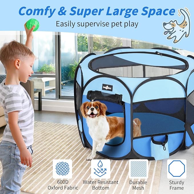 - DURABLE MATERIALS: Made from premium thick mesh fabric and 600D PVC fabric, our portable dog playpen is lightweight, odorless, waterproof, and scratch-resistant. The 8-panel design of the puppy playpen with reinforced seams and corners provides a secure play and rest space for your pets. Ideal for cats, dogs, rabbits, hamsters, lizards, and other small animals, and also suitable for pets recovering from surgery, pregnancy and childbirth, and other special circumstances.