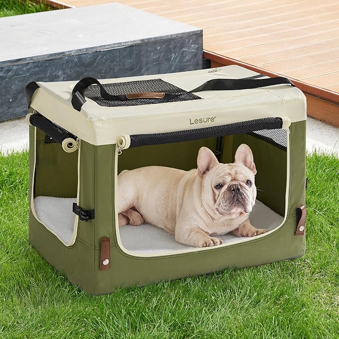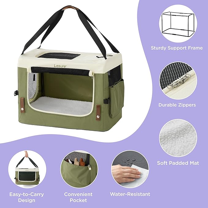 Lesure Collapsible Travel Dog Crate for Small Dogs, Portable Soft Dog Crate for Outdoor & Indoor, Folding Fabric Dog Kennel with Handle, 24 Inch Heavy Duty Pet Carrier (Green)
