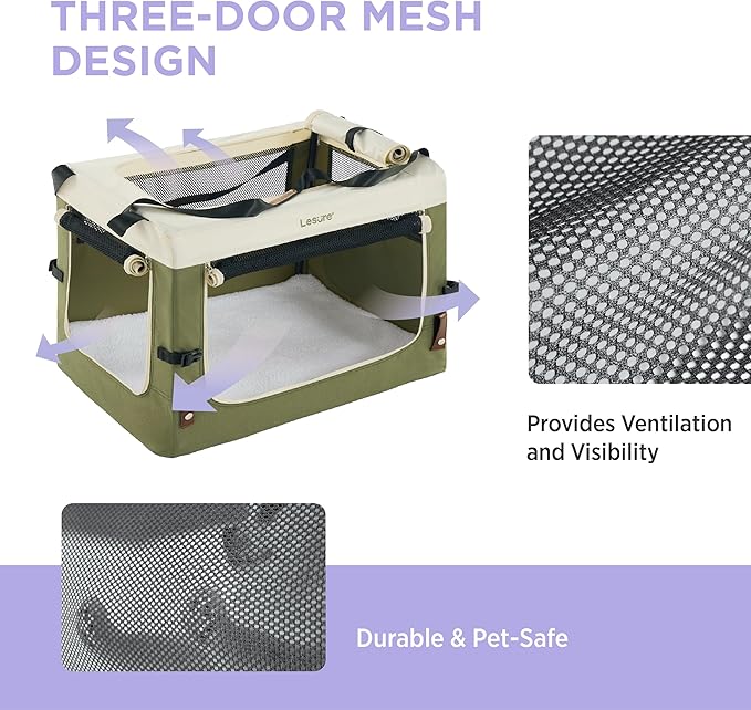 - Safety First, Adventures Always: Engineered with a sturdy frame and scratch-resistant mesh, this crate is a must-have for your adventurous companion. Escape-proof zippers combine with a built-in safety belt and a reinforced PU leather buckle for easy in-car use?”so you can travel with confidence, knowing your buddy is snug and secure. Plus, the dual layer bottom provides a safety net for your peace of mind.