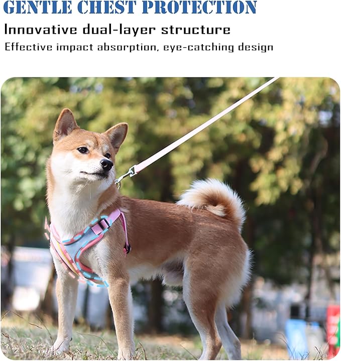 - 【Breathable Air】The dog harness is made with soft mesh nylon fabric,which is high-density, soft and comfortable. This lightweight pet harness is perfect for walks all year round.