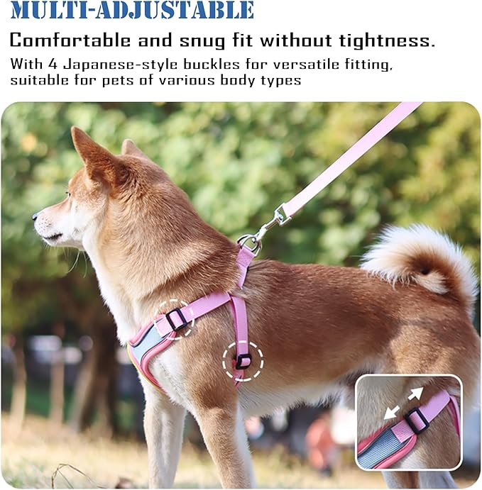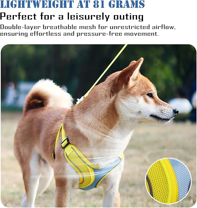 - 【Breathable Air】The dog harness is made with soft mesh nylon fabric,which is high-density, soft and comfortable. This lightweight pet harness is perfect for walks all year round.