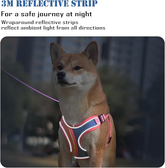 - 【Better Control】Our pet harness with reflective stripe can reflect ambient light in extreme low-light conditions, ensuring maximum visibility when night running.