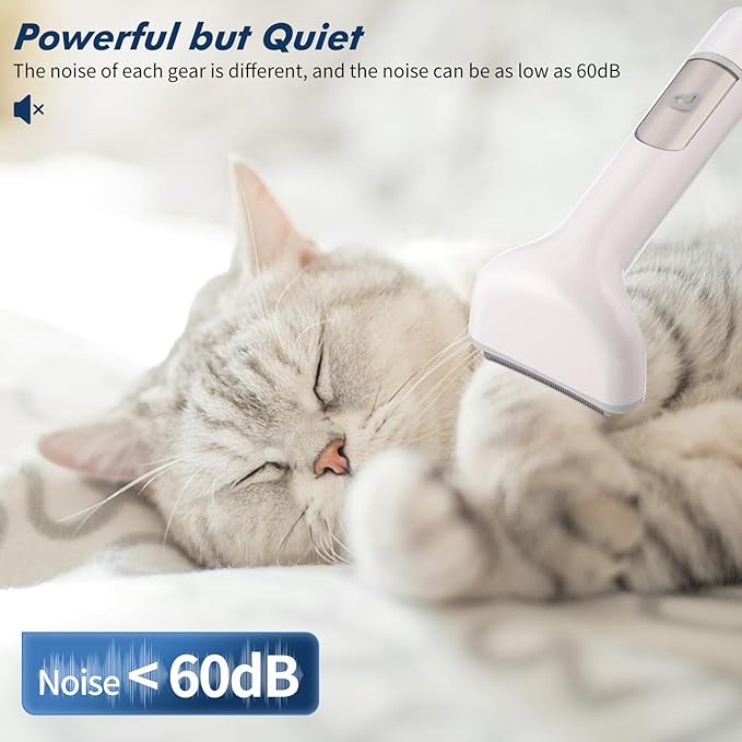 - LOW NOISE & HIGH SUCTION: Suspension motor combined with multi-point anti-noise design, the noise is only 50dB. Won't scare your dog or cat during grooming and effectively protect their sensitive hearing.