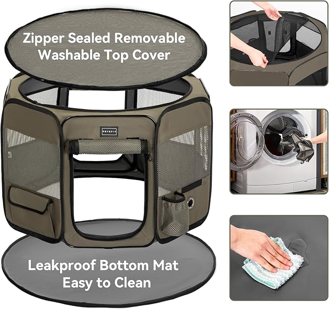 PETSFIT Dog Pen Indoor, Anti-Leakage Bottom, Foldable, Collapsible Dog Playpen Indoor/Outdoor for Cats