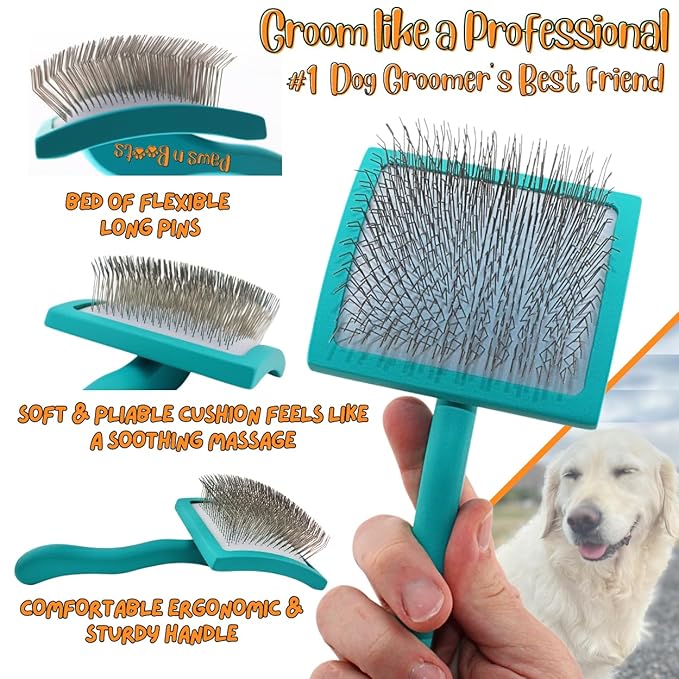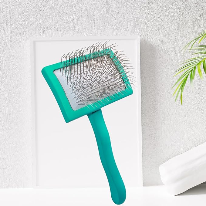 Pro-Slicker Brush Grooming Tool for Pets: Medium Teal, Soft Cushion Bed of Dull Pins, Gentle but Effective. Easily and Painlessly Remove Thick Undercoat. Reduce Brushing Sessions, Groom like a Pro