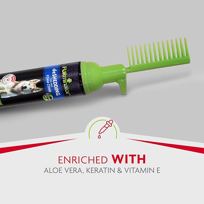 FURminator Tub-Free Deshedding Foam Comb, 3 Ounces, Grooming Comb for Dogs Helps Freshen Coat and Reduce Odors with No Rinsing