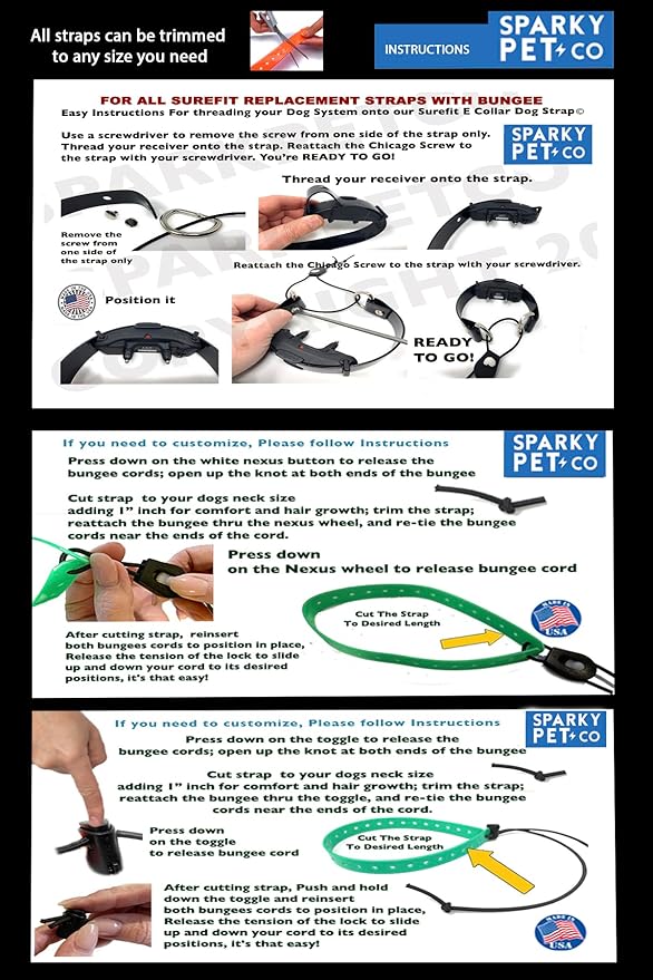 - ECOLLAR GPS REPLACEMENT STRAP: Spring into the season by updating your dog's e-collar receiver strap! This 3/4" flexible high flex strap with 28 holes to custom fit to your dog's small neck. QUICK BUNGEE TOGGLE CLOSURE: EASY CARE: Waterproof strap! SPARKY PET CO: Our mission is to create the best customer experience with the products, service, and after-sale support you can count on. We offer a wide range of popular pet supplies and manufacture our exclusive replacement straps for all GPS.