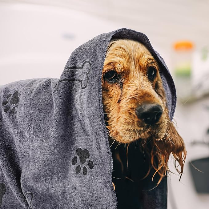 - Cute Style: 2 microfiber pet towels are in gray and the other 2 in coffee; They are designed with a classic bone print pattern, indicating that they are made for pets; They can be applied not only by your own dogs, but also as gifts for a friend's beloved dog