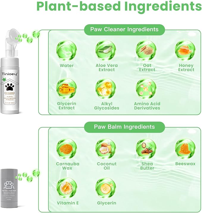 - 【Plant-based Pet Paw Cleaner and Lick Safe Dog Paw Balm】 The puppy paw cleaner contains plant-based ingredients that will not cause any harm to your pet’s paws. At the same time, the dog balm for paws and nose also allows you to not worry about your dog licking it after applying it. Our pet paw balm can also be used as dog nose balm.