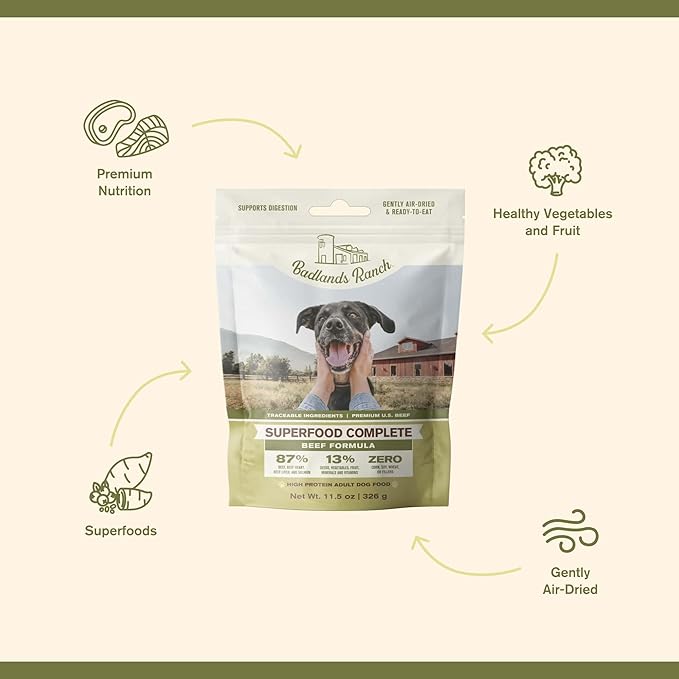 Superfood Complete, Air-Dried Adult Dog Food - High Protein, Zero Fillers, Superfood Nutrition by Katherine Heigl (11.5 oz., Beef Formula)