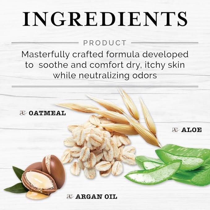 - SOOTHING ITCH RELIEF: The easy-to-rinse formula is infused with nutrient-rich ingredients and botanical extracts. Soothing Oatmeal, hydrating Aloe and nourishing Argan Oil combine to help relieve dry, itchy skin, leaving your pet ready for cuddles.