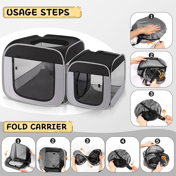 Large Cat Playpen with Separate Areas,Outdoo&Indoor Cat Enclosures,Portable Pet Playpen for Indoor Cats,Puppy and Small Animals, Dog Playpen with Carrybag.