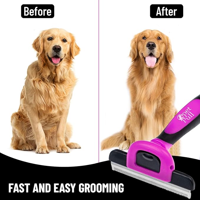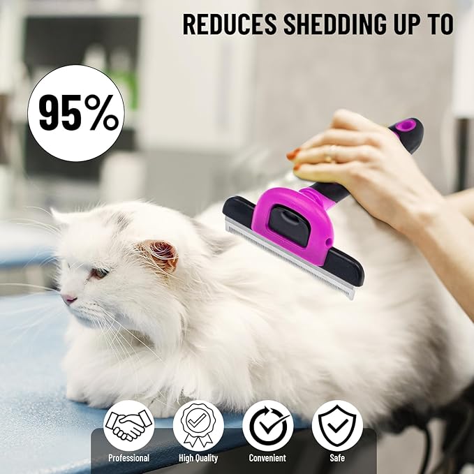 - 🐩 REVOLUTIONARY SHEDDING REDUCTION TECHNOLOGY - Are you tired of the constant struggle to keep your home free from pet hair? Not anymore. Our dog fur remover professional pet deshedding brush remove 95% of the shed hair from small, medium & large dogs and cats, leaving it smooth, shiny, and tangle-free.