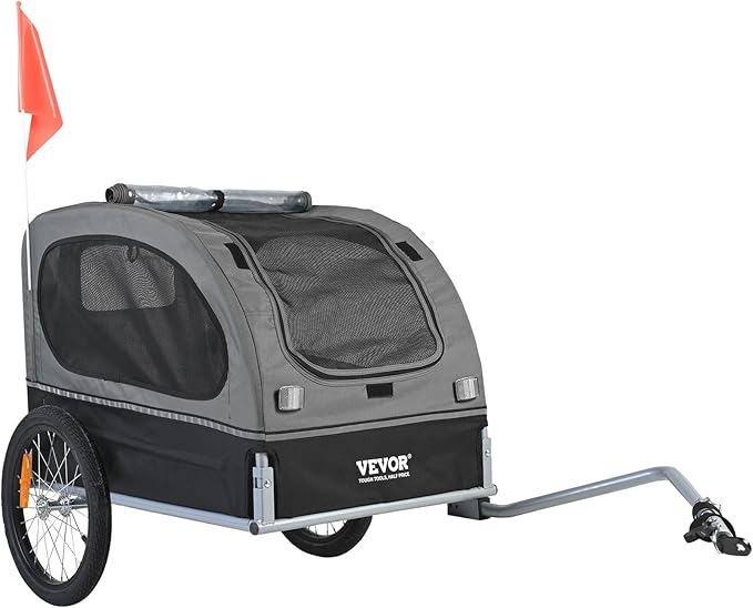 VEVOR Dog Bike Trailer, Supports up to 66/88/100 lbs, Pet Cart Bicycle Carrier, Easy Folding Frame with Quick Release Wheels, Universal Bicycle Coupler, Reflectors, Flag, Collapsible to Store
