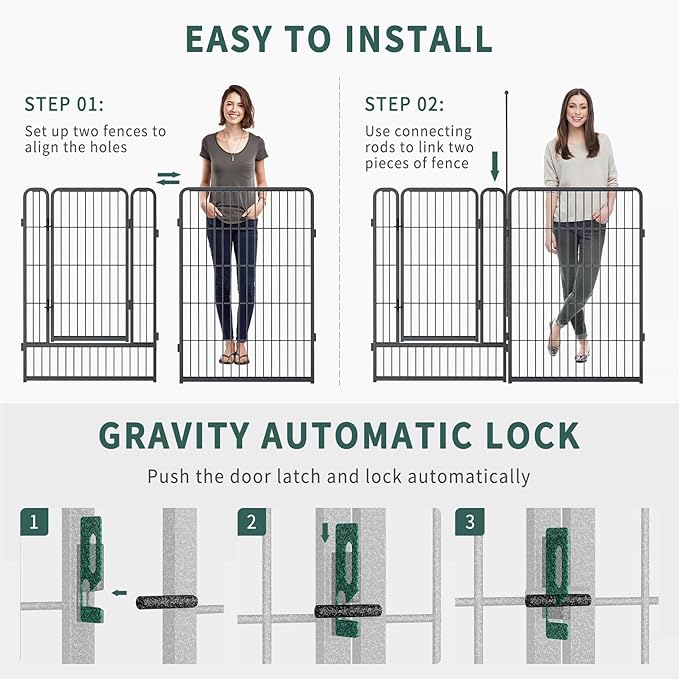 - 【Hammer Paint Finish】The surface of the pet fence adopts hammer paint process, which has excellent corrosion resistance, impact resistance and flatness. While protecting your pet from scratches, it can adapt to all kinds of extreme weather and is durable.