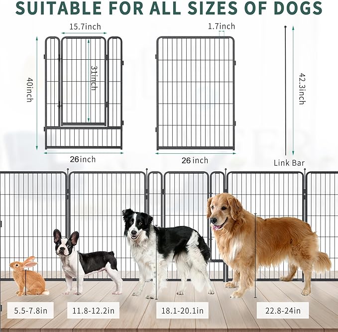 - 【Pets Ideal place】The size of gate of the pet fence is 40"H x 26"W. It is an ideal and safety place for large, medium and small animals.Suitable for indoor and outdoor.
