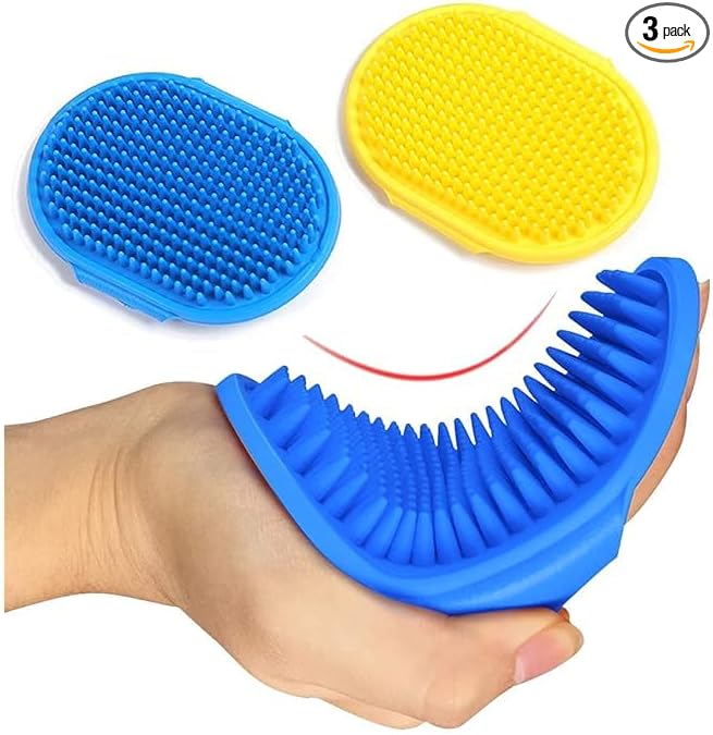 JASLAH 3 PCS Set, Pet Massage Brush Dog Bath Brush for Long/Short Hair Pet Shampoo Brush Soft Silicone Comb for Pets Grooming Bathing Tool Dog Hair Removal Tool, Blue+Yellow+Pink