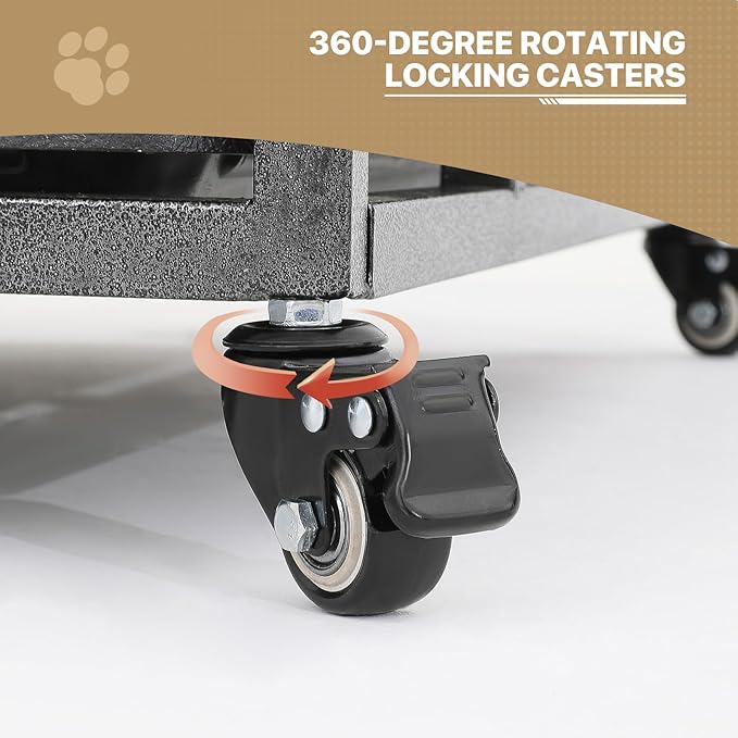 - 360-Degree Rotating Locking Casters - Equipped with 360-degree rotating locking casters, our crate allows for effortless movement and can be securely locked in place. This feature provides convenience in positioning without sacrificing stability, ensuring your pet's safety and your peace of mind.