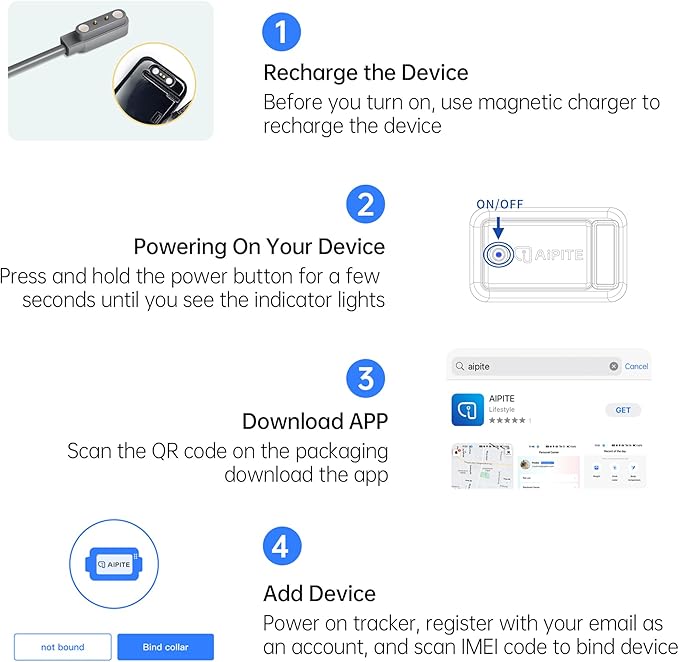 - No Monthly Fee: AiPITE pet tracker support multi user co-monitoring the real-time tracking of your pet throung your phone, no any further fee. With the APP, you can check on your pets and make sure they are safe anytime, anywhere!