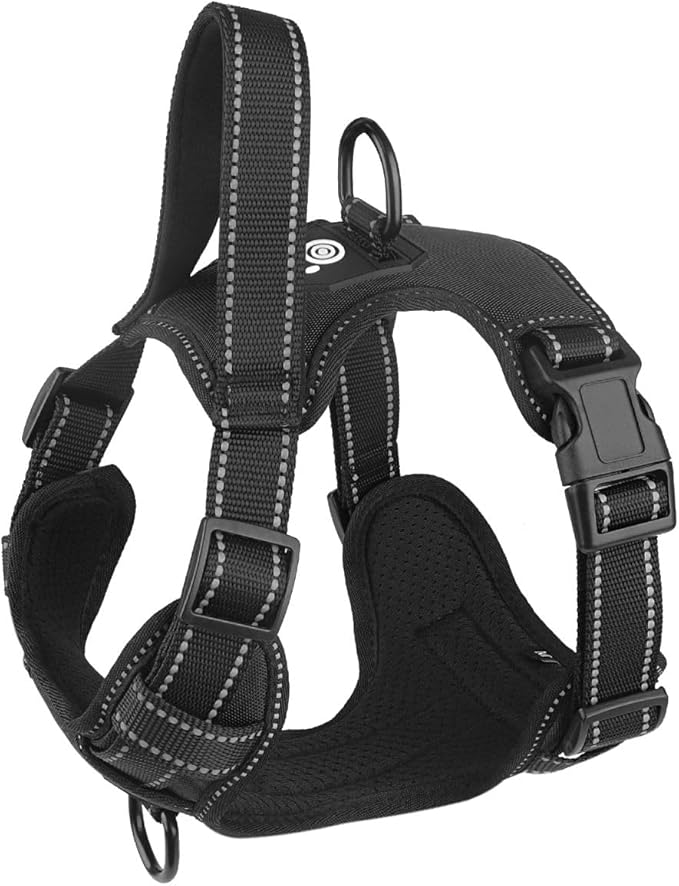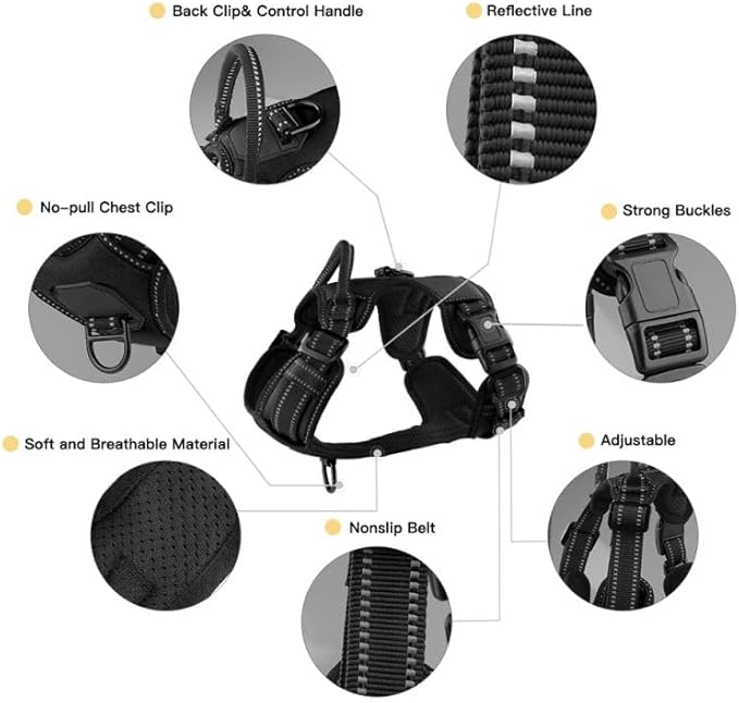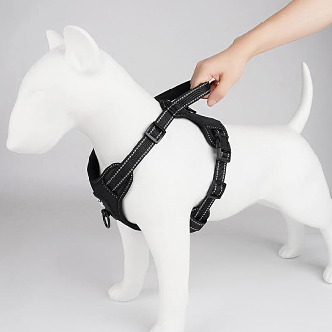 - Safety and Comfort Prioritized: Crafted from nylon webbing with 3M reflective material, our harness ensures excellent visibility during night runs. Equipped with a robust handle on the back, it allows for securing your dog with a seat belt while driving. The breathable mesh lining, coupled with soft sponge padding, prevents injuries, offering superior comfort and protection.