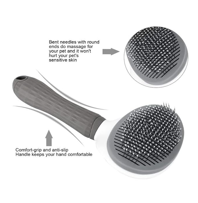 Pet Brush Universal Pet Self Cleaning Slicker Brush for Dogs and Cats with Long or Short Hair, Gray