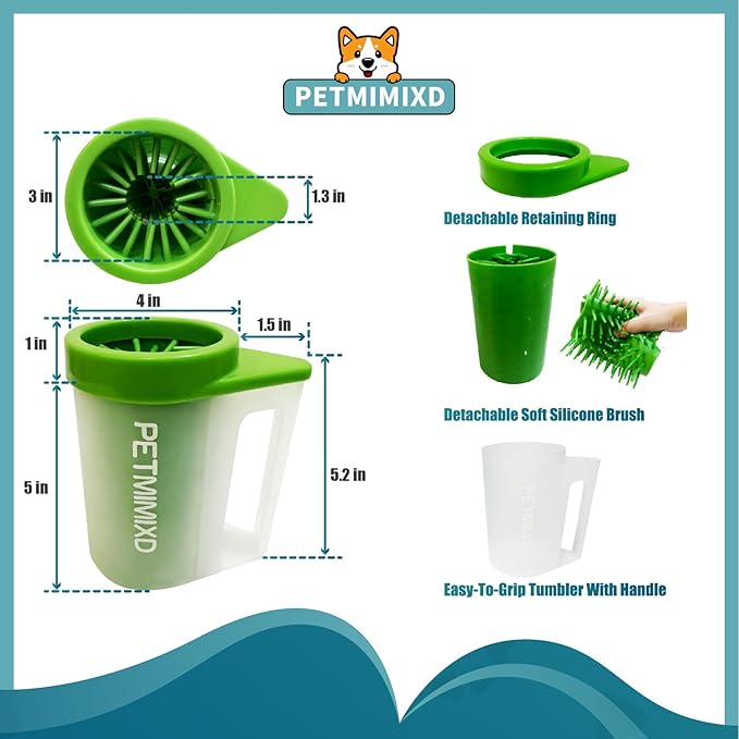 Paw Cleaner with Handle for Dogs (with 2 Absorbent Towels & 2 Adjustable Bath Brushes for Short and Long Hair), Muddy Foot Washer, Green, Medium