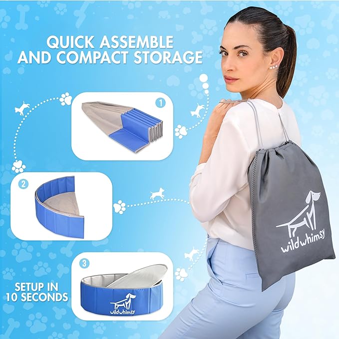 Wild Whimsy Dog Ball Pit - 32 Inch Small Foldable Ball Pit for Dogs - Indoor Outdoor Playpen with Metal Reinforcement Ring - Storage Case Included - Holds Over 400 2.75 Inch Balls (Sold Separately)