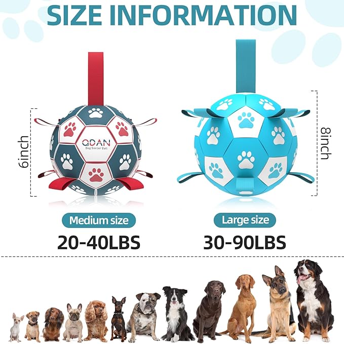 - ⚽Durable Dog Ball Toy: Complying with the exact same standard as children's toys, the dog ball is made of premium PU that is the material of standard soccer ball so that it can be kicked and bounced as well. Note, our dog soccer large balls is suitable for 30-90lbs dogs, MEDIUM SMALL DOG PET needs to choose our medium small one.