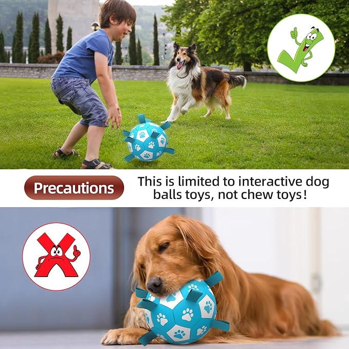 - ⚽Interactive Dog Toys: A perfect dog interactive toy for indoor and outdoor playing, training, enhances interaction with dogs and improve interests. The nylon tabs create an erratic bounce that dogs love to chase, let your dog become more lively, relieve the depression, it will increase emotion with your pet.