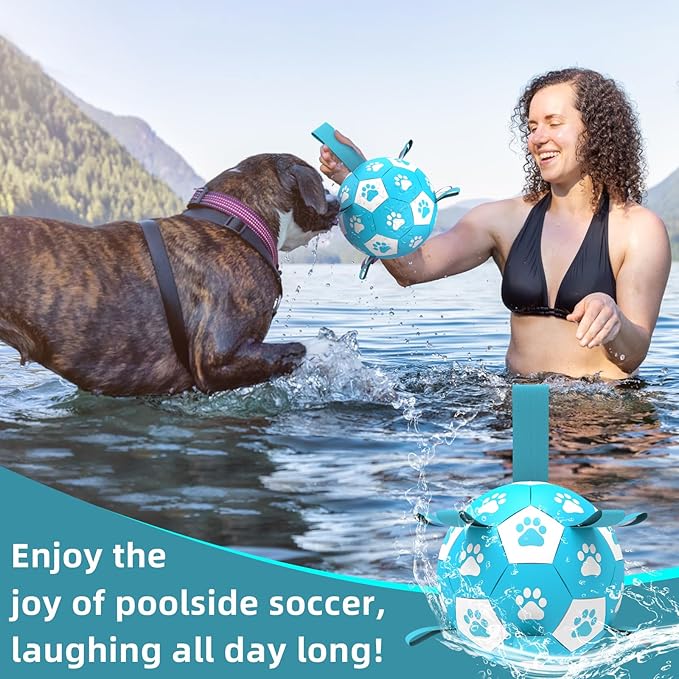 - ⚽Unique Dog Water Toys: Our dog pool toys are the perfect choice for active play in pool/beach, ensuring long-lasting entertainment for your furry friend with nylon tabs sewn evenly into the seams not only create an erratic bounce that dogs love to chase, but also make it easier for the dogs to fetch, toss, tug and retrieve.