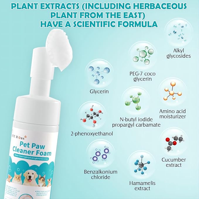 Paw Cleaner for Dogs and Cats,Pet Paw Foam Brush-Clean Paws,Cleaning Brush-Moisturizing to Prevent Dry Cracking,Odor Control,Rinse Free,Simple &Quick