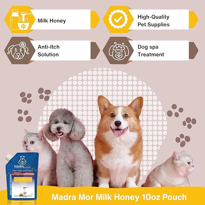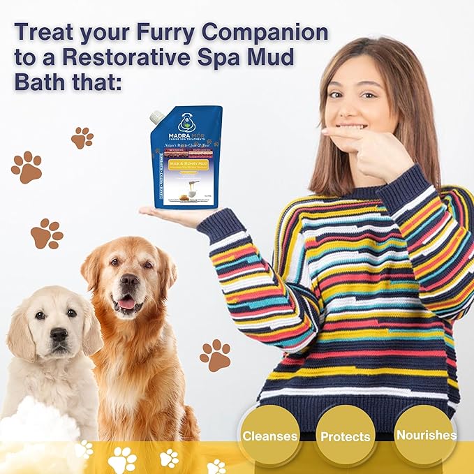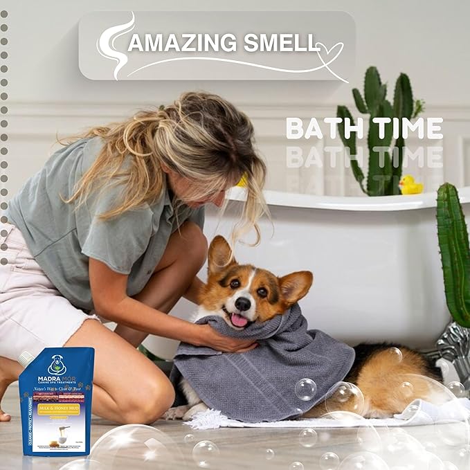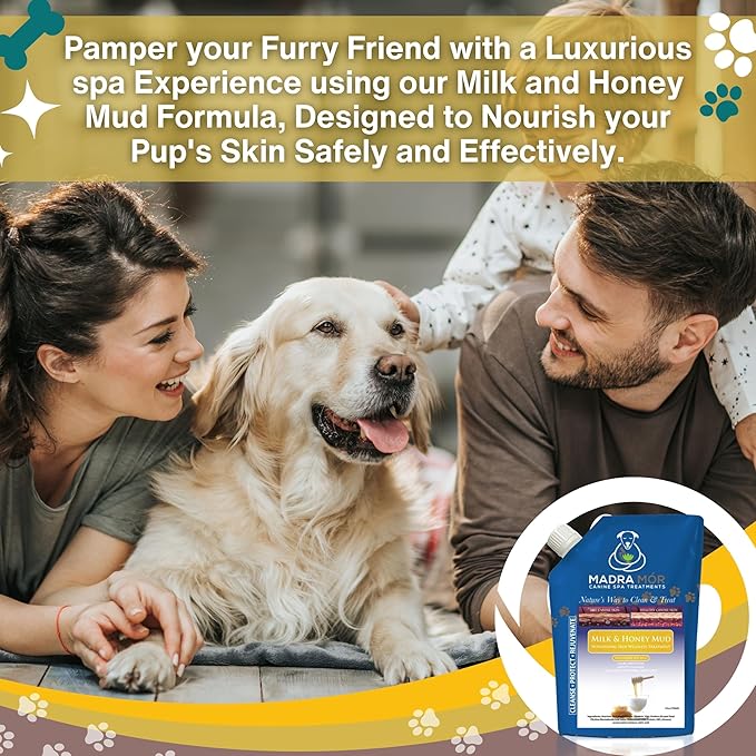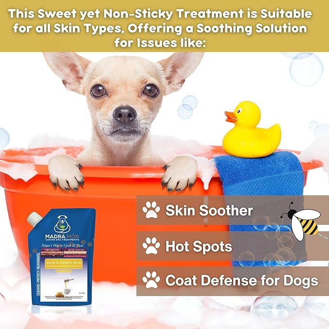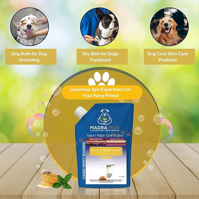Worldwide Nutrition Madra Mor Milk & Honey Mud Spa Bath for Dogs | Dog Bath for Dog Grooming | 10oz Pouch Mud Bath Dog Essentials with Multi-Purpose Key Chain, brown