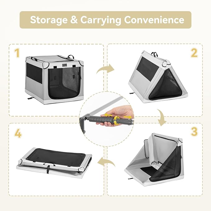 PETSFIT Portable Dog Crate, Soft Dog Crate - 36 Inch Easy Set-up, Light, Sturdy, Comfy Inside with Thicken Mat, Collapsible Crate for Home and Travel Light Grey