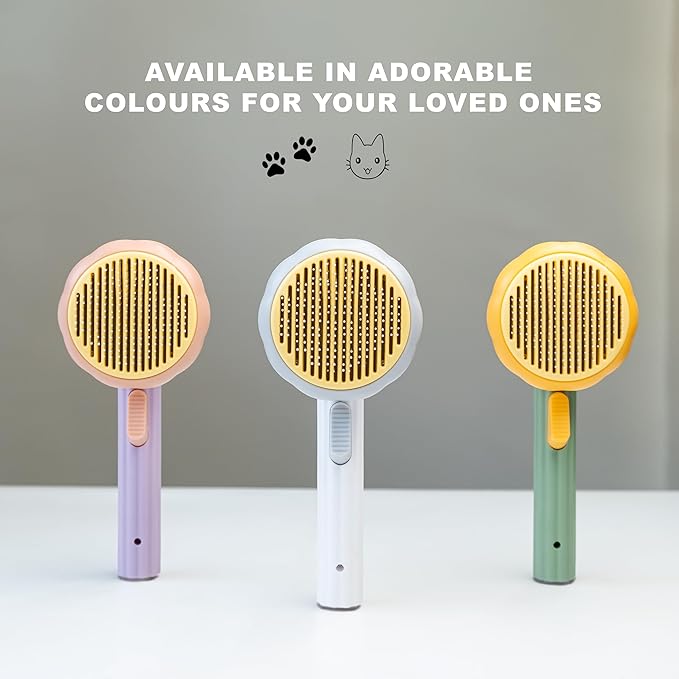 - ONE-CLICK CLEANING BUTTON - cat/dog brush with One-Click Cleaning Button saves time and energy when grooming and cleaning. Simply click the button to auto release the collected shed hair. The brushed hair can be easily pushed out from the bristles. Perfect for cat and dog, rabbits.