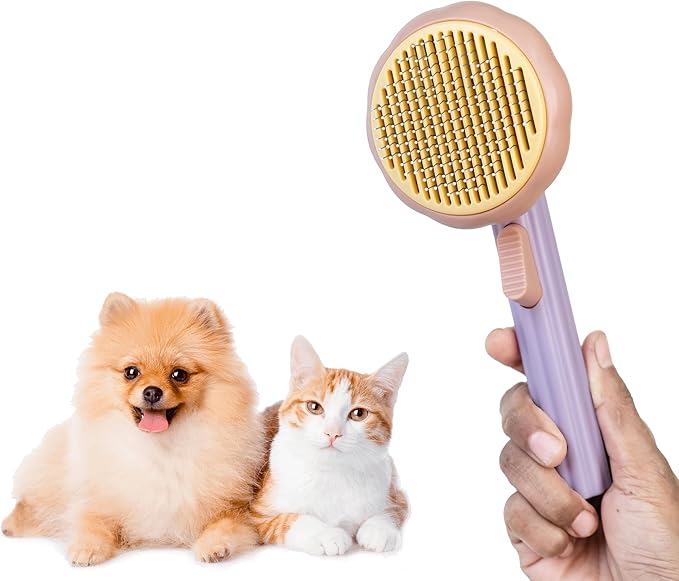 - ONE-CLICK CLEANING BUTTON - cat/dog brush with One-Click Cleaning Button saves time and energy when grooming and cleaning. Simply click the button to auto release the collected shed hair. The brushed hair can be easily pushed out from the bristles. Perfect for cat and dog, rabbits.