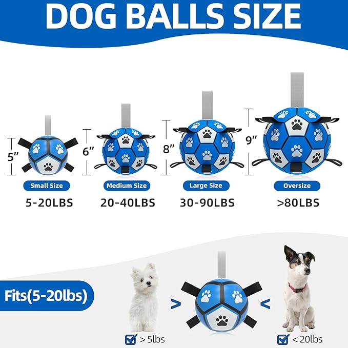- ⚽Pump & Needle Adapter Included: The herding balls for dogs come deflated. There's a needle point adapter and a pump inside as well while other items in the same market only include a ball needle. The soccer ball dog toy is 5 inches in diameter, perfect for small breeds, not for aggressive chewers.