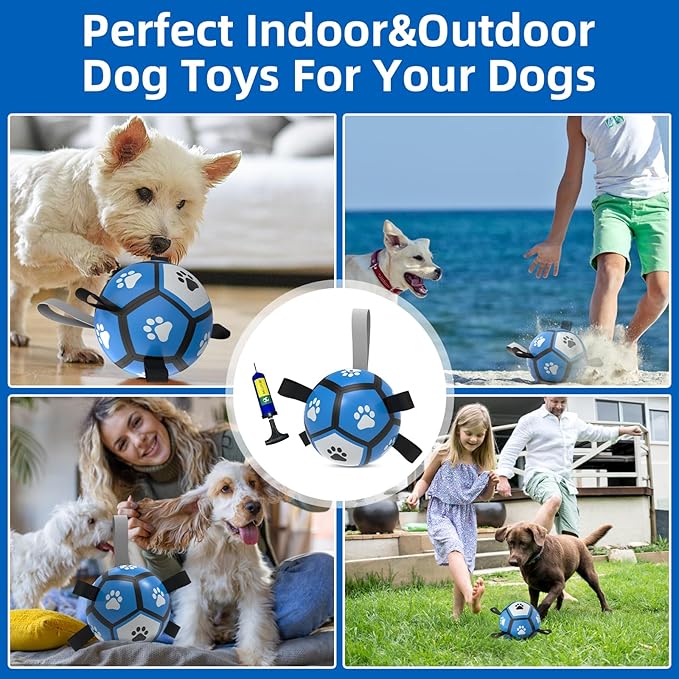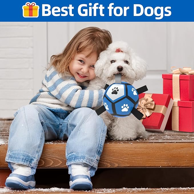 - ⚽Interactive Dog Toys: A perfect dog interactive toy for indoor and outdoor playing, training, enhances interaction with dogs and improve interests. The nylon tabs create an erratic bounce that dogs love to chase, let your dog become more lively, relieve the depression, it will increase emotion with your pet.