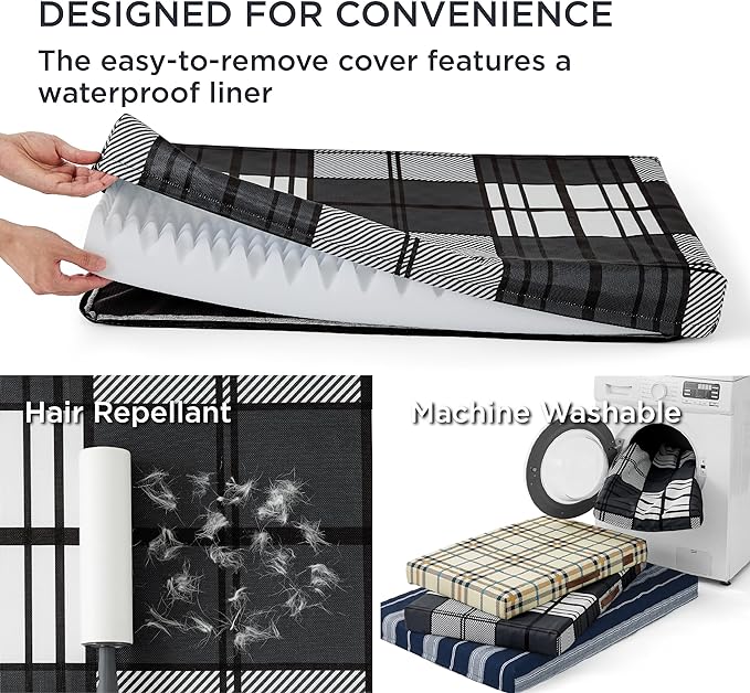 Bedsure Large Patterned Dog Bed for Large Dogs, Outdoor Waterproof Orthopedic Egg Foam Dog Bed Comfort Pet Mats for Crate with Removable Washable Cover(35"x22", Black)